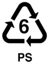 폴리스티렌인 기호 6번 PS는 아래와 같이 플라스틱 숟가락 포크, 장난감 또는 흔히 스티로폼으로도 사용